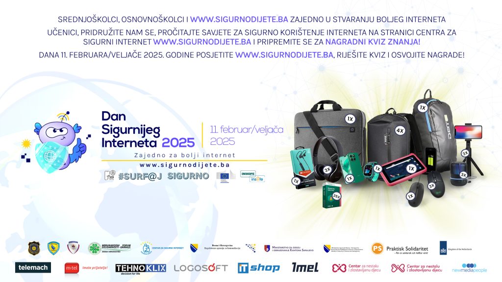 Као и претходних година, SID 2025 организовао је такмичење за ученике основних и средњих школа – онлајн квиз на тему сигурности на интернету. Квиз је био доступан само 11. фебруара од 9.00 до 19.00 часова на https://www.sigurnodijete.ba/.