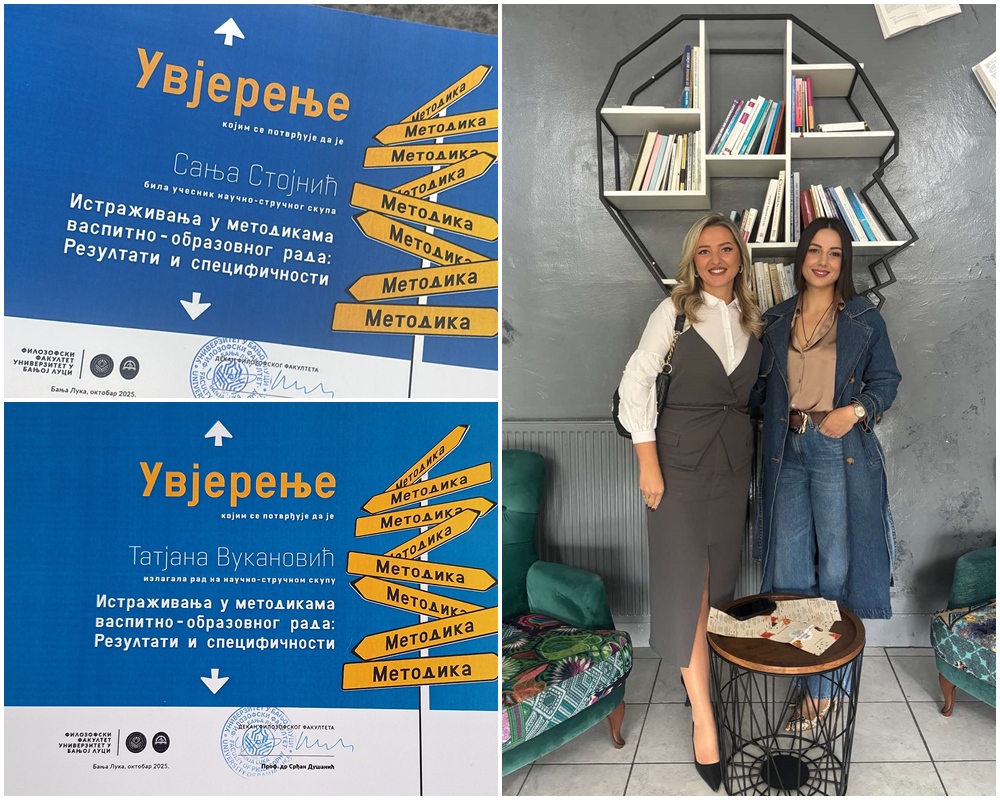 Татјана Вукановић и Сања Стојнић су учествовале на научно-стручном скупу под називом „Истраживања у методикама васпитно-образовног рада: резултати и специфичности“, одржаном 3. октобра 2025. године на Филозофском факултету Универзитета у Бањој Луци.